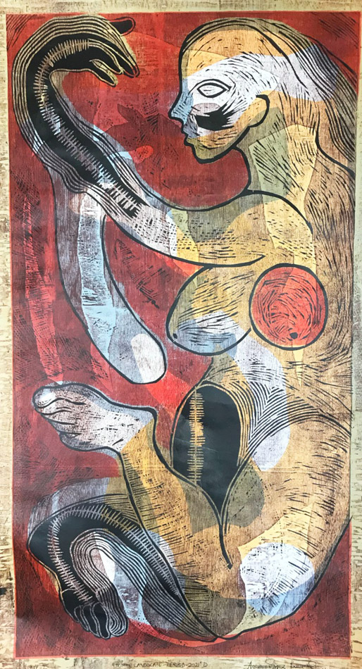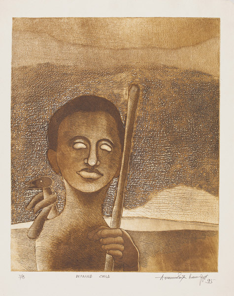 Ananda after completing his bachelor of Fine Arts in Painting from college of art Delhi 1975-1980, and then master in Fine Arts in Printmaking from Kala Bhavan – Santiniketan 1983-1985, went to Camberwell college of Arts and Crafts-London for research associate ship in Printmaking under the Charles Wallace India trust award. He has exhibited in numerous shows in India and abroad including number of Solo shows in – Gallery Espace, The British Council and Lalit Kala Akademi , India Habitat Centre,New Delhi, and many other galleries in various cities.