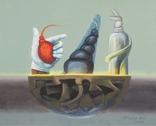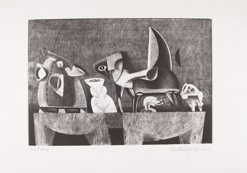 Dattatreya Apte: B. 1953 Dattatreya Apte obtained Diploma in Drawing and Painting (Government of Maharashtra) and B. A. Hons. from University of Pune. He did his post Diploma in printmaking from M.S. University, Vadodara in 1980. Charles Wallace India Trust award gave him a chance to work under the guidance of Prof. Jacky Perry at Glasgow School of Art in 1999. He has exhibited in 10 one man shows in New Delhi, Mumbai and Chennai. Dattatraya has participated in numerous important exhibitions, including the International Biennale of prints, Bhopal; IV International Art Triennale, Maidacis, Poland; the 14th exhibition of the Korean Graphics Society, Seoul; Swarnarekha-Golden Jubilee Exhibition of Art, Lalit Kala Akademi. He is founding member of “Indian Printmakers Guild” and organized printmaking exhibitions in India and abroad and also published catalogues with article related to printmaking techniques, new trends, methods and material etc. He also curated “Mini Print Exhibition” a travelling Exhibition, for Gallery Espace, New Delhi. Curated the travelling exhibition “Beyond the Surface” works in paper-pulp, Gallery Espace, New Delhi. “Multiple Encounters” an exhibition of Indo-American Prints, co-curated for IGNCA, Mati Ghar, New Delhi, 2004. He is the winner of several award including AIFACS award, National award, honorary mention in Print Biennale, Bharat Bhawan, Bhopal etc. He is also a recipient of a Senior Fellowship, Government of India. He has participated in various camps and conducted workshops in art schools. His works are in collection of several private and public collectors in India and abroad. Presently he is working as guest faculty in Jamia Millia Islamia in the department of Graphic arts and Sharda University School of Art, Design & Media Studies and also at College of Art, New Delhi. He is practicing from his studio at Kala Dham, Greater Noida,UPand Lalit Kala Akademy, Garhi studios, New Delhi