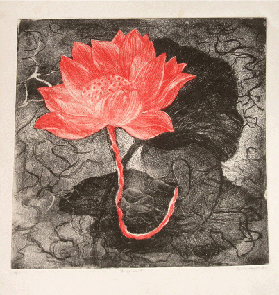 Her works are in collection with Prime Minister House (Panchvati Hall) in N.Delhi, Ministry of Civil Aviation , N.Delhi; National Gallery of Modern Art, Lalit Kala akademy,N.Delhi; National Bibliotheque, Paris; Otterbien University and Columbus in Ohio, Korea , Bangladesh, Greece and in many important academies and corporate houses in India and abroad. Founder member of ‘Indian Printmakers guild’ and ‘Multiple Encounters’.