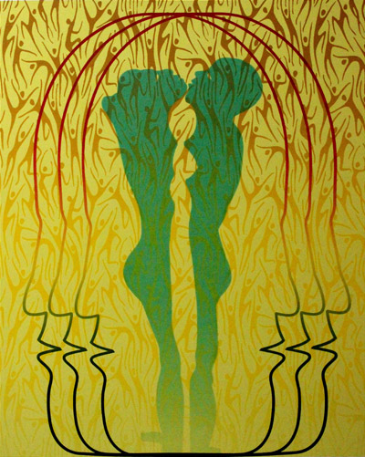 I have executed many mini and imperial size portofolios like “Fantasy 2000”, “Purusha & Prakriti” and lately titled “Impressions on Impression”; which is in two parts I & II; which motivated my inventive sense and proved to be pretty engaging.  By diminishing the opacity of colour pigment and giving it a look of varying layers to the spectator, I was able to use colours in a very distinctive way.  The viewer could perceive overlapping of colours with exquisite tones while gazing at the final work of the serigraphy prints.